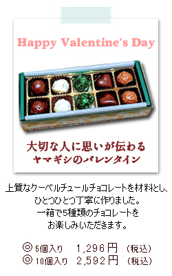 ■バレンタインチョコレート販売中! バレンタインの贈り物におすすめの、 チョコレートを販売しております。 ご予約も承りますので、詳しくはお店にお問合せ下さい。 【詳しくはコチラをご覧ください】 皆様のご来店、お待ちしております!